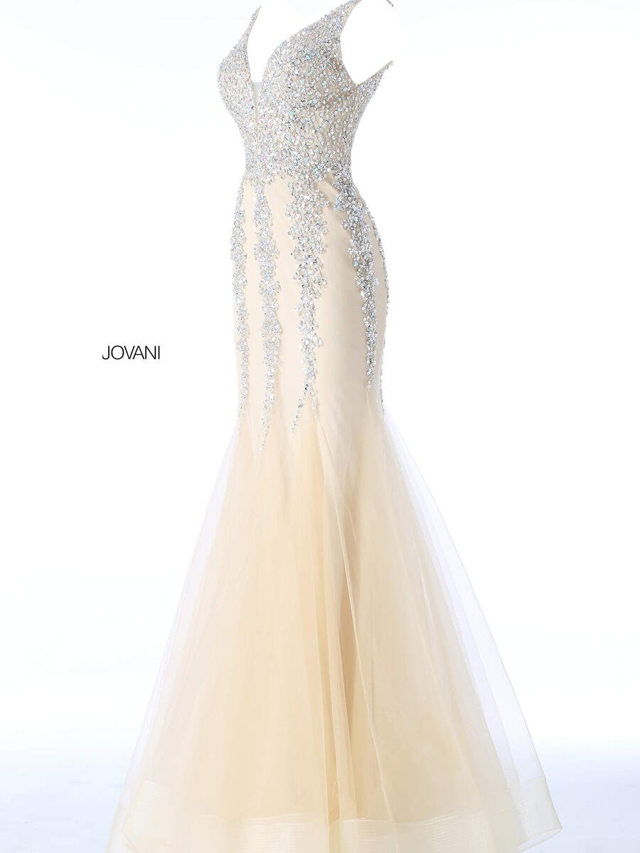 Designer Description- Shimmering beaded plunging neckline mermaid dress by Jovani